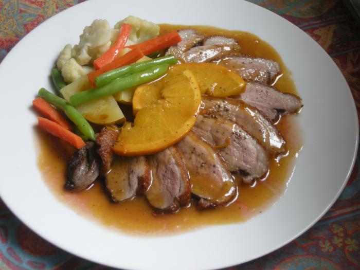 อาหารสเปญจานนี้อาจดูคล้ายเป็ดอบส้มของฝรั่งเศส แต่แท้จริงรสชาติต่างสายพันธุ์กันเลย เมื่อแขกมัวร์ได้รุกรานคาบสมุทรไอบีเรียในต้นศตวรรษที่ 8 เมียนักสู้วัวกระทิงก็เริ่มรู้จักหมักเป็ดด้วยอบเชย ซึ่งเมื่อเคล้าด้วยซอสส้ม ร่ำไวน์อย่างฝรั่งแล้วก็ชอบใจกันยิ่งนัก กินเสร็จก็ขับไล่แขกมัวร์ออกไปจนหมดในต้นศตวรรษที่ 12